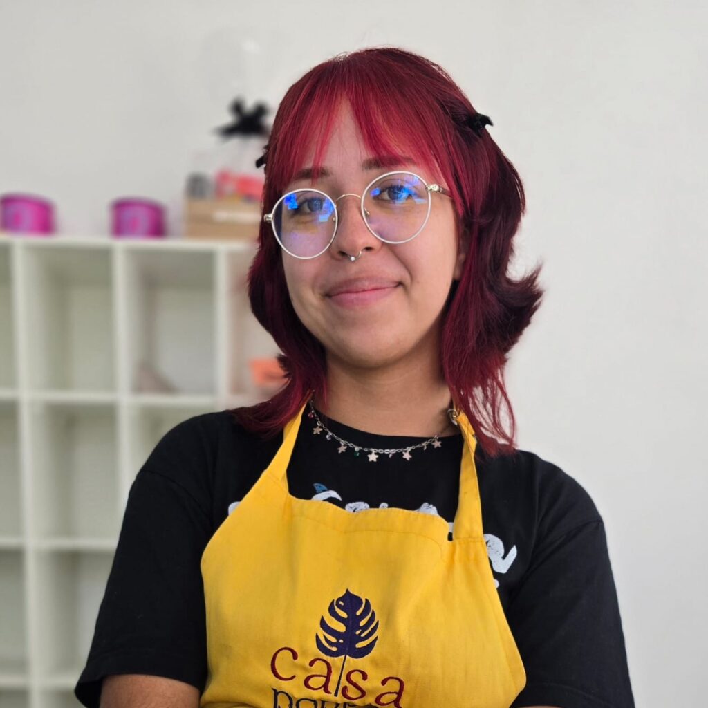 Cheia de doçura conquista as crianças com seu jeito carinhoso e acolhedor. Adora escutar as histórias do mundo infantil, entrar nas brincadeiras e se encantar com cada descoberta.